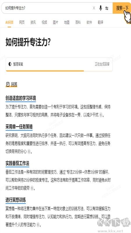 1、當(dāng)用戶在360ai搜索引擎中輸入任何問題時(shí),都會(huì)觸發(fā)一系列復(fù)雜的處理流程,并智能生成答案。