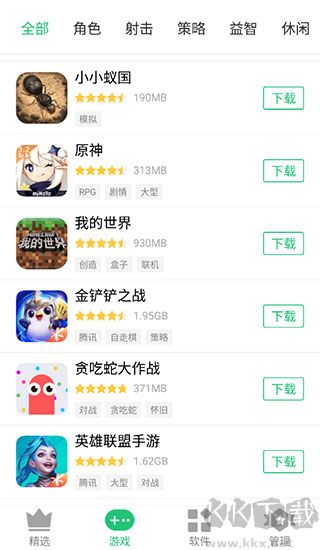 2、點(diǎn)擊游戲,根據(jù)游戲類型篩選,就可以找到同類別的軟件。