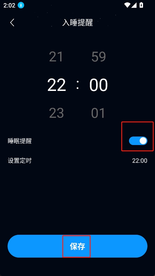 3.按照自己的睡眠習(xí)慣調(diào)好時(shí)間,將睡眠提醒開(kāi)關(guān)打開(kāi),點(diǎn)擊保存即可。
