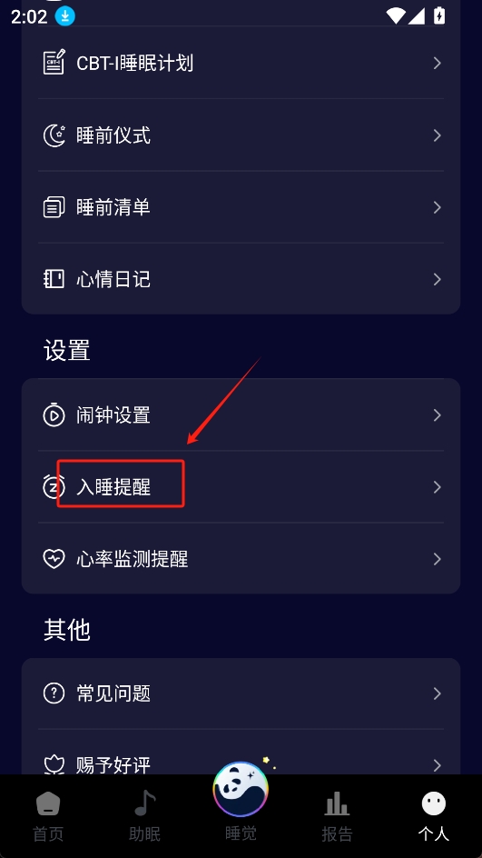 2.下滑找到“入眠提示”,點(diǎn)擊進(jìn)入;