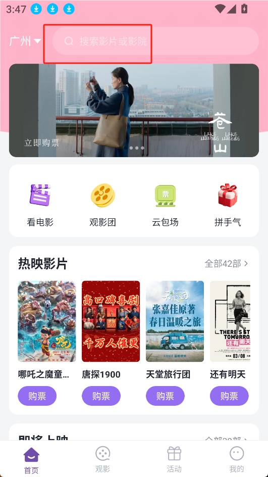 2.熱門影片開放預售,可提前預定影院最佳觀影位置,快人一步;
