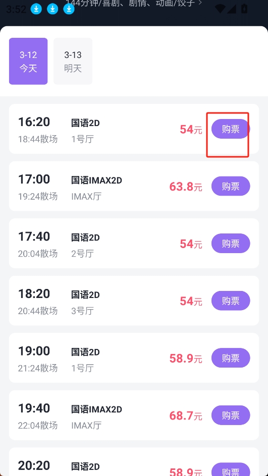 2.搜索完成后選中你想要觀看的影片,點擊右邊的“購票”;