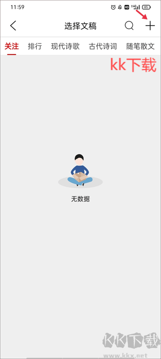 3、此處將展示您所創(chuàng)作的全部文獻(xiàn)作品,煩請點(diǎn)擊右上角的 “+”。