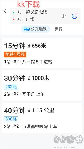 6、您可在主界面底部選取公交、地鐵、步行這兩種方式以規(guī)劃路線。請(qǐng)輸入您的起點(diǎn)位置與終點(diǎn)位置(默認(rèn)起點(diǎn)為您的當(dāng)前位置),進(jìn)而搜索您所需的路線。例如,此為搜索公交路線。