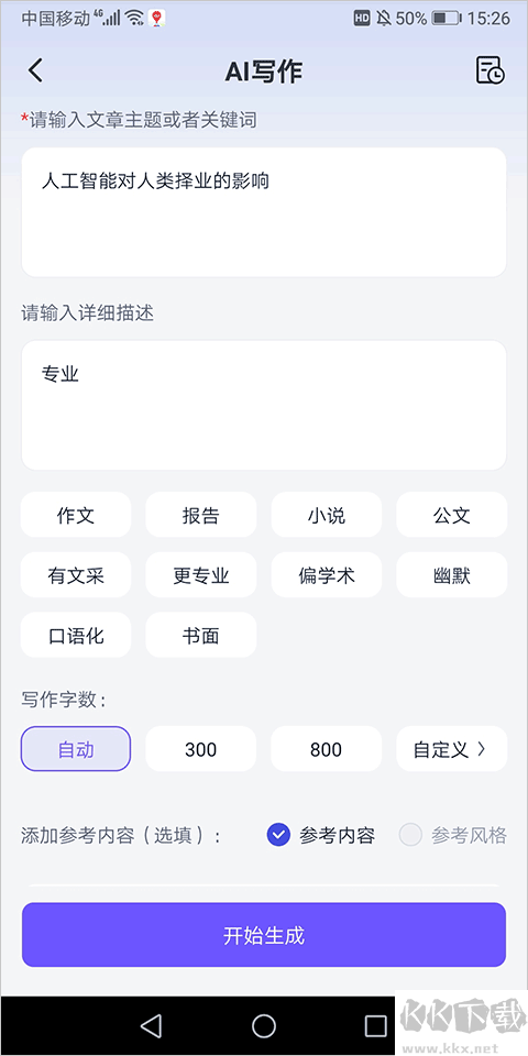 2、例如,AI 寫(xiě)作功能在輸入框中輸入相關(guān)主題后,即可自動(dòng)生成具備一定字?jǐn)?shù)的長(zhǎng)文或短文
