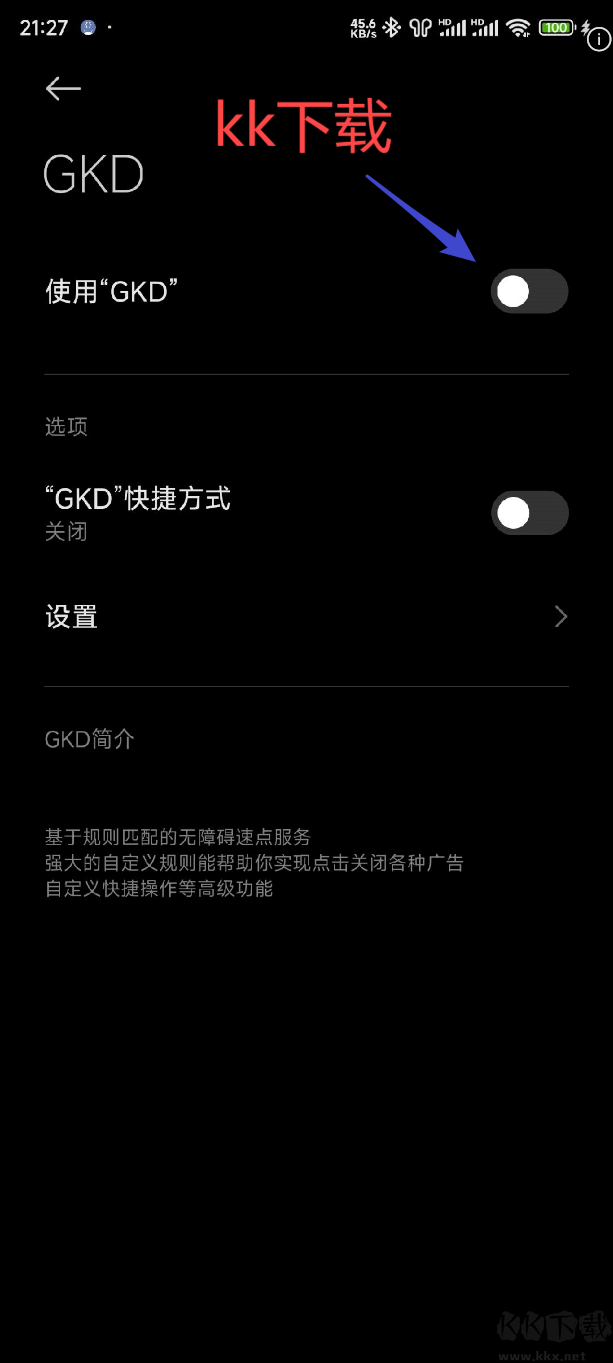 GKD 跳廣告最新版是一款功能非常強(qiáng)大且好用的廣告跳過(guò)軟件,這款軟件能夠支持自定義規(guī)則,可以根據(jù)文字、按鈕、圖片等元素自動(dòng)進(jìn)行操作,為你跳過(guò)視頻中出現(xiàn)的廣告,避免自動(dòng)登錄情況,還能關(guān)閉彈窗,使用的界面也非常的簡(jiǎn)潔,新手也能輕松上手操作使用,感興趣的小伙伴就快來(lái)kk網(wǎng)站下載體驗(yàn)一下吧。