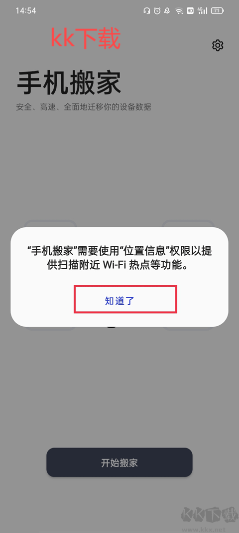 4、此外,其需啟用位置信息權(quán)限,以實(shí)現(xiàn)掃描附近 WiFi 熱點(diǎn)等功能。請點(diǎn)擊 “知道了”。