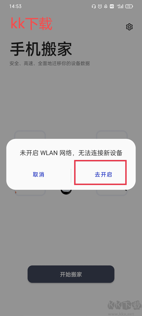 2、此時彈出一個提示窗口,若要連接新設(shè)備,需開啟 WLAN 網(wǎng)絡(luò),請點(diǎn)擊 “去開啟”。