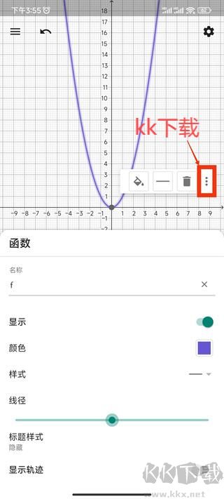 9、當(dāng)您點(diǎn)擊選中函數(shù)后,點(diǎn)擊其旁邊的三個(gè)小點(diǎn),在彈出的選項(xiàng)中,可對(duì)函數(shù)名稱、顏色、樣式等進(jìn)行更改;
