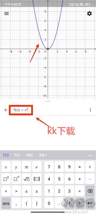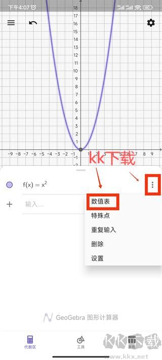 4、隨后,直接于加號(hào)圖標(biāo)右側(cè)開展輸入操作。在此處,我們輸入函數(shù) f(x)=x² 。完成輸入后,即可觀察到圖中呈現(xiàn)出相應(yīng)的圖像;