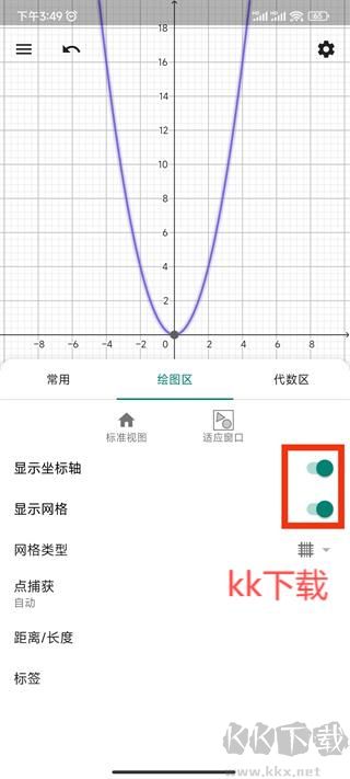 5、若繪圖區(qū)未顯示網(wǎng)格及坐標(biāo)軸,可點(diǎn)擊右上角的齒輪圖標(biāo);