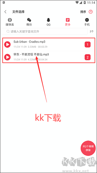 2、隨后將進(jìn)入文件選擇頁(yè)面,請(qǐng)您選擇期望合并的多個(gè)音頻文件;