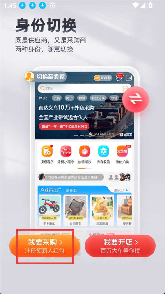 2.采購商和供應(yīng)商角色一鍵切換,方便用戶切換使用,不用再注冊(cè)多個(gè)賬號(hào);