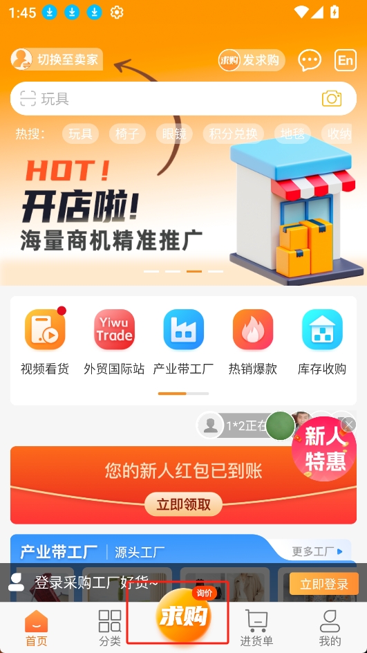 2.進(jìn)入到主頁后,點(diǎn)擊求購: