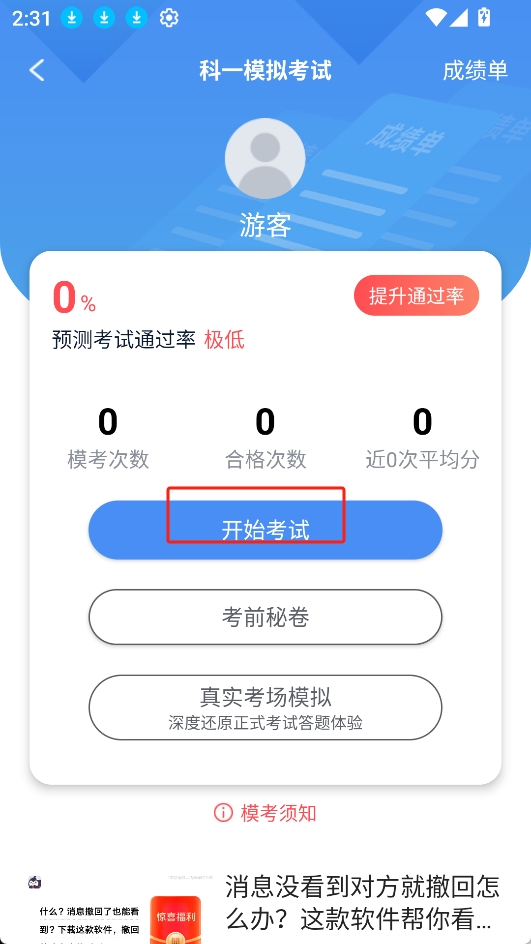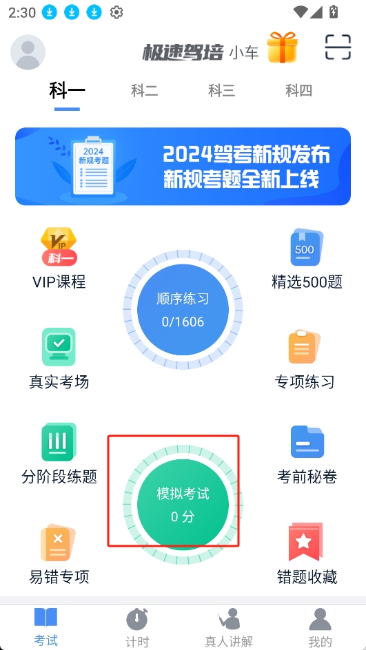 3.選擇好科目后點(diǎn)擊模擬考試;