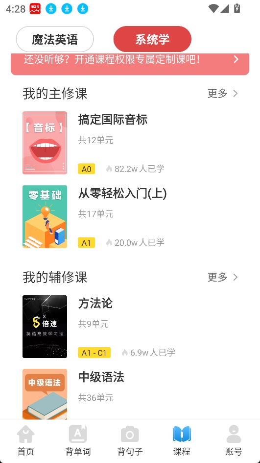 3.配合學(xué)校課程,音標(biāo)測(cè)試、聽(tīng)音組詞等功能鞏固課堂知識(shí),解決上課沒(méi)聽(tīng)懂的問(wèn)題;