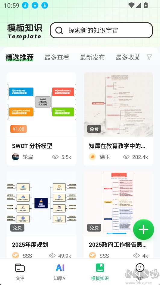 2.工作匯報、知識整理、計劃制定等豐富的模板,可以免費使用;