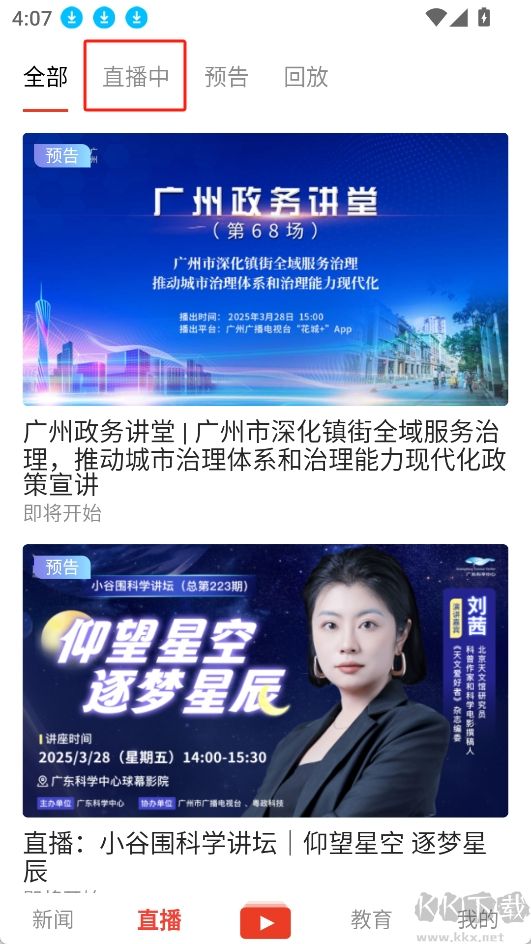 3.在下面選擇你感興趣的直播;