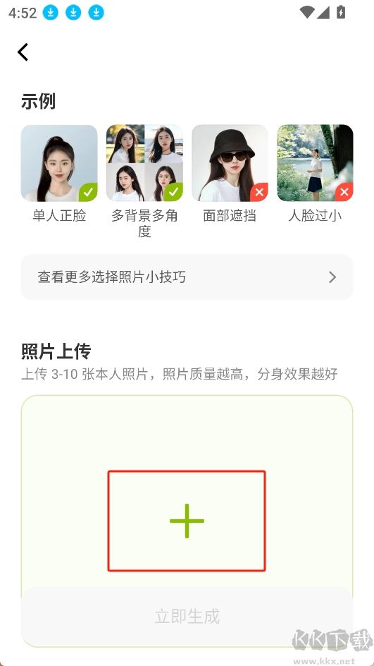 1.生成個(gè)人虛擬形象,上傳3張自拍,創(chuàng)建專屬數(shù)字形象隨意搭配;