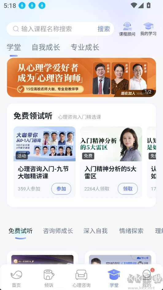 4.免費(fèi)和付費(fèi)兩種心理課程,幫助疏導(dǎo)心理、情緒管理、壓力應(yīng)對等實(shí)用技能;