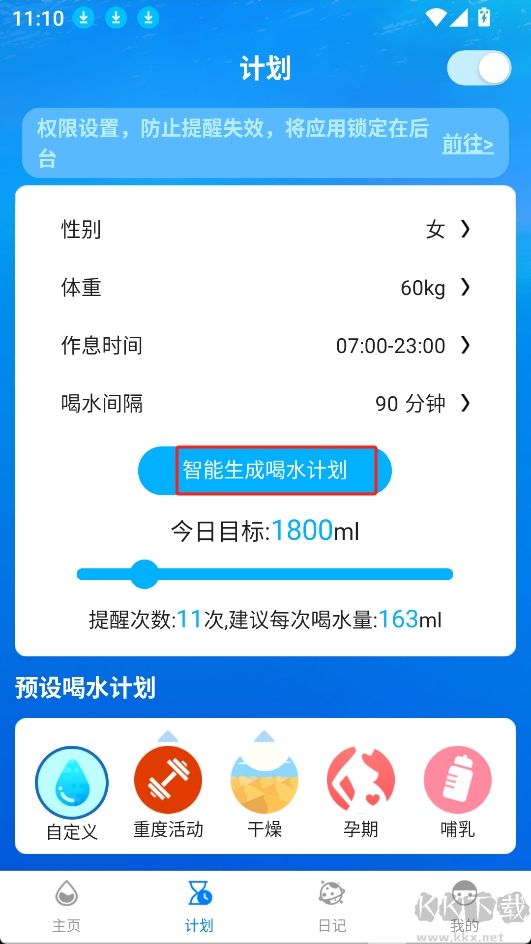 3.填寫完成后點(diǎn)擊智能生成喝水計(jì)劃;