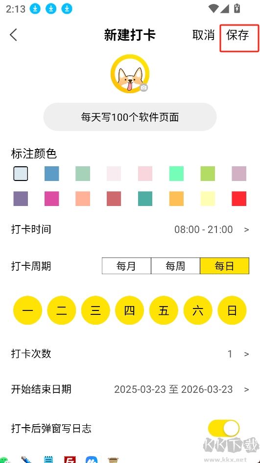 2.根據(jù)自己喜好和目標(biāo)自定義打卡圖標(biāo)、內(nèi)容等信息;