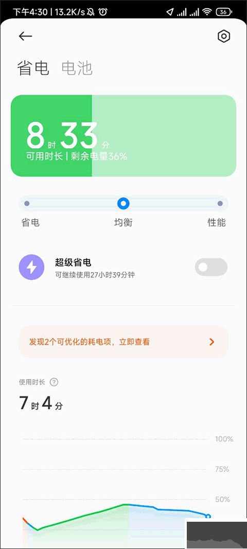 當前,我們進入省電與電池設置板塊,能夠看到,“小編的世界” 的省電模式并未開啟。