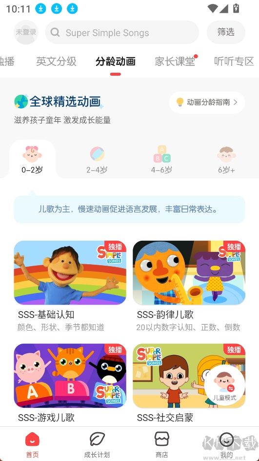 2.精選動(dòng)畫資源,全球熱播兒歌和動(dòng)畫,經(jīng)典IP動(dòng)畫、認(rèn)知啟蒙系列,內(nèi)容安全適配兒童觀看;