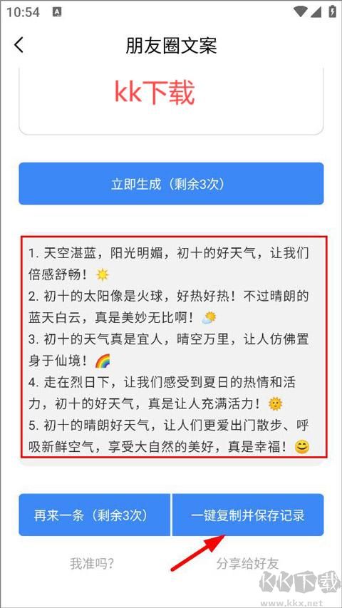 3、請等待約 10 秒,下拉此頁面即可查看到已生成的文案。您可選擇文案后一鍵復(fù)制,并保存相關(guān)記錄,同時也能夠?qū)⑵浞窒斫o您的合作伙伴或友人 。