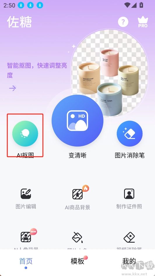 1.進入app進入主頁,點擊AI摳圖并上傳照片,如圖所示: