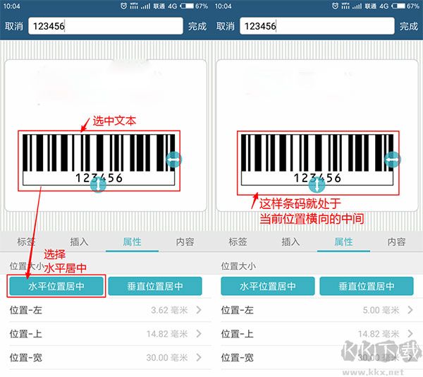 請將當(dāng)前條碼選中,隨后選擇【水平位置居中】選項,如此便可使條碼處于當(dāng)前位置的橫向中間位置 。