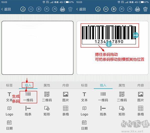 若生成的條碼覆蓋了模板中的其他內(nèi)容,則需對條碼位置進行調(diào)整。操作方法為:按住條碼,保持按壓狀態(tài),將其移動至其他位置即可。