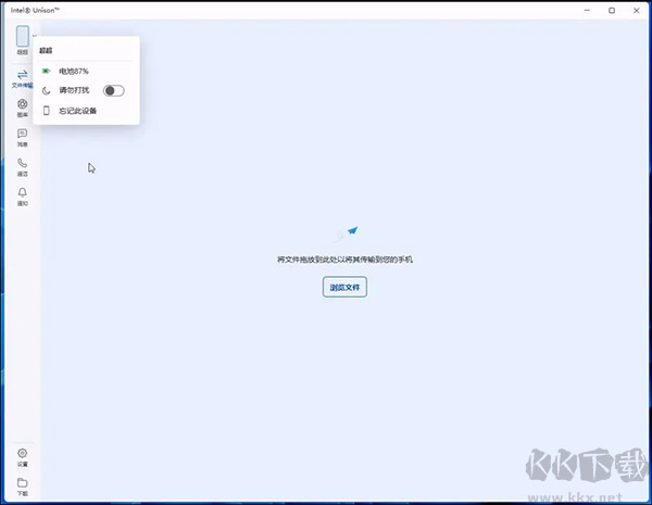 4、已連接的手機(jī):具備手機(jī)與電腦文件互傳功能。在電腦端,通過(guò)將文件拖拽至相應(yīng)界面即可實(shí)現(xiàn)傳輸操作。點(diǎn)擊已連接的手機(jī)名稱,將彈出提示框,其中呈現(xiàn)手機(jī)電量、開啟 / 關(guān)閉勿擾功能以及忘記此設(shè)備三項(xiàng)功能選項(xiàng)。
