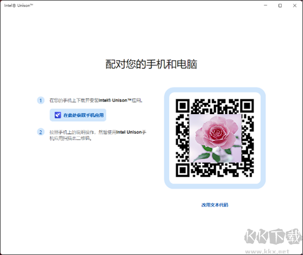 2、通過(guò)手機(jī)端的 Intel Unison 應(yīng)用掃描二維碼(或采用文本代碼替代方式)實(shí)現(xiàn)連接。