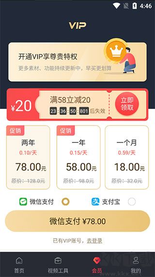 1、從kk下載站下載視頻剪輯APP,首先需注冊(cè)賬號(hào)并完成登錄,方可使用;