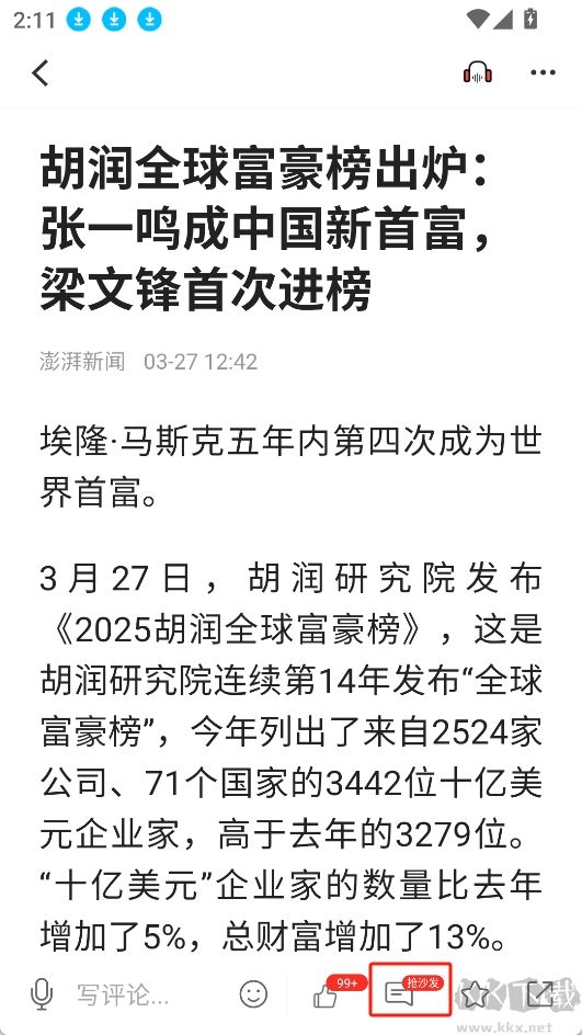 3.選擇你想要評論的新聞,點擊進入,然后點擊下面的評論,編寫評論后發(fā)表即可。