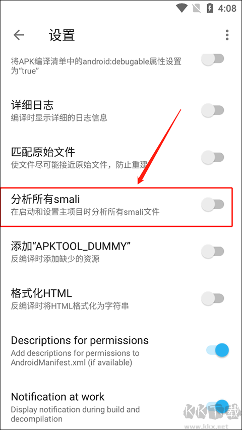 4、將 “分析所有 smali” 選項(xiàng)的勾選開關(guān)設(shè)置為 “開啟” 狀態(tài)。