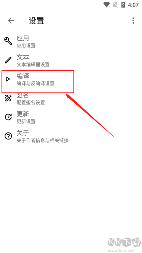 2、于 “Apktool M> 設(shè)置” 界面內(nèi),點(diǎn)擊 “編譯與反編譯設(shè)置” 這一設(shè)置項(xiàng)。