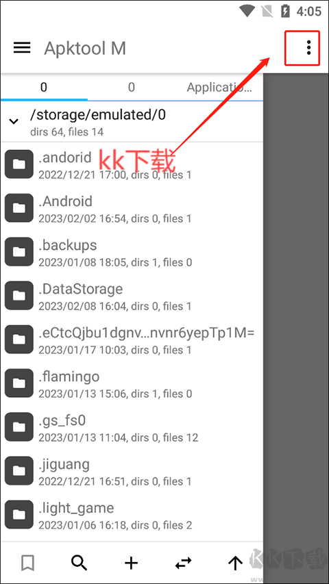 1、在運(yùn)行 apktoolm 軟件之后,點(diǎn)擊右上角的【三個(gè)點(diǎn)】圖標(biāo) ;
