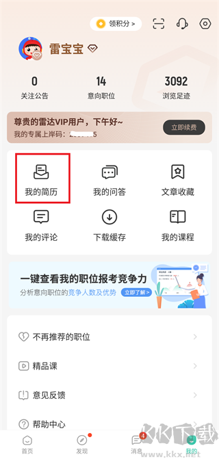 1.進(jìn)入主頁(yè),點(diǎn)擊我的,點(diǎn)擊我的簡(jiǎn)歷;