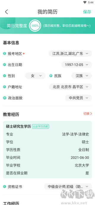 2.完善簡(jiǎn)歷,點(diǎn)擊右上角保存;