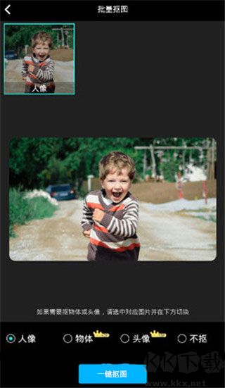 2、可選擇人像、物體、頭像等進(jìn)行不扣操作,之后點(diǎn)擊【一鍵摳圖】