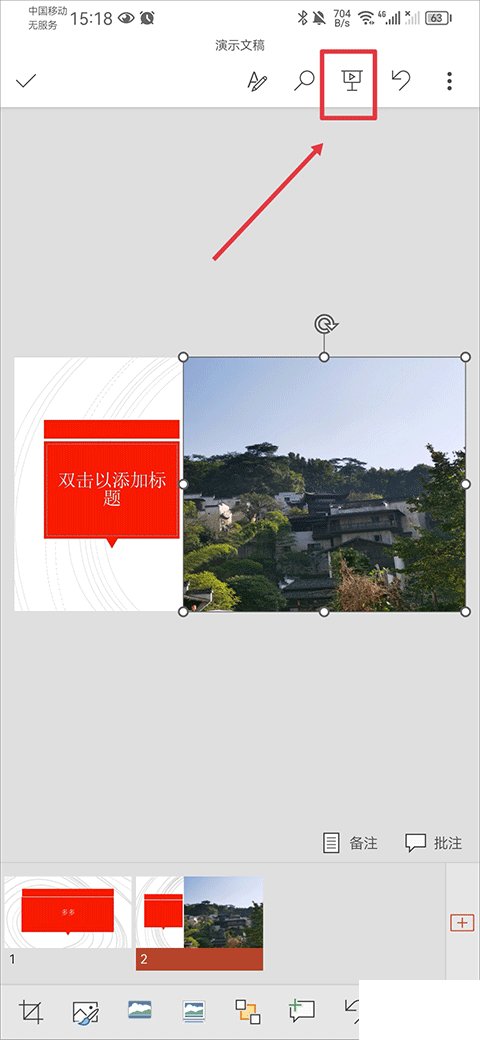 1、當(dāng)演示文稿編輯完成后點(diǎn)擊最上方的播放按鈕將進(jìn)行播放