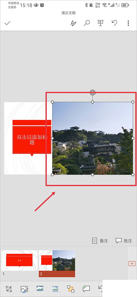 3、圖片添加到文稿中后,你可以通過(guò)拉伸來(lái)調(diào)整圖片的大小,調(diào)整完成后點(diǎn)擊任意位置即可保存