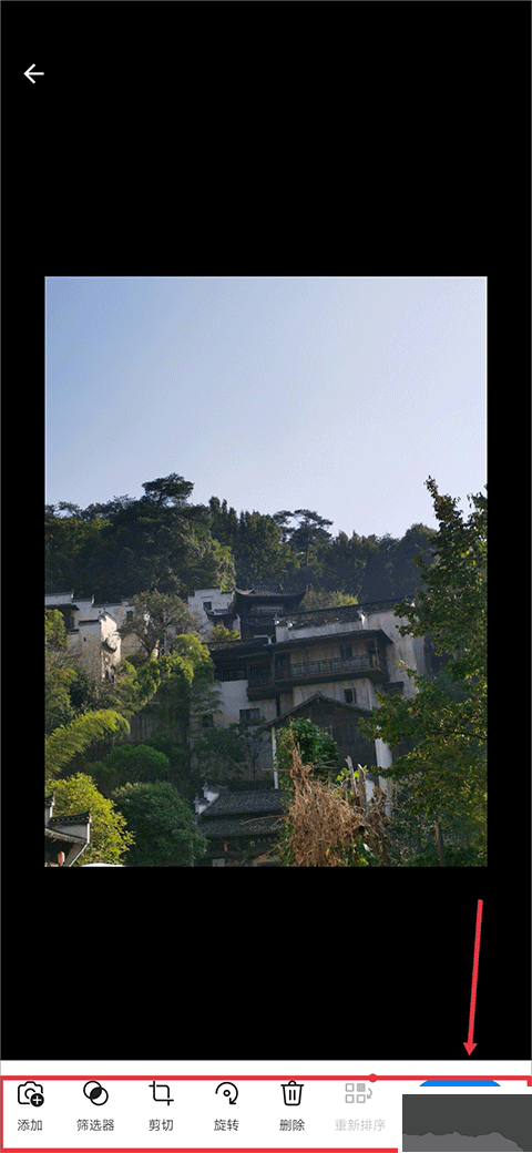 2、點(diǎn)擊后會(huì)進(jìn)入手機(jī)圖庫(kù),選擇設(shè)置背景的圖片并點(diǎn)擊完成,若需要編輯該圖片還可以使用工具再次進(jìn)行編輯