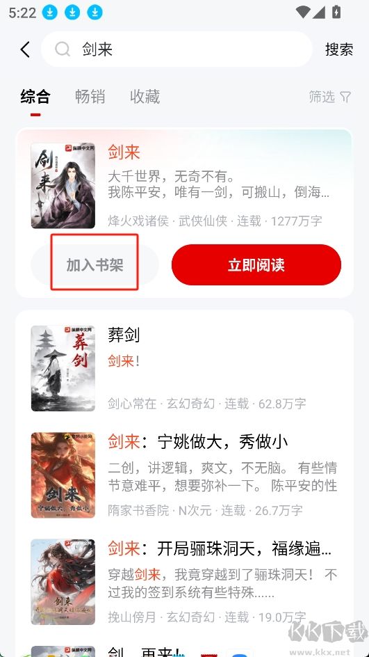 2.搜索自己想要加入書架的名稱,然后根據(jù)搜索結(jié)果找到它,點(diǎn)擊加入書架;
