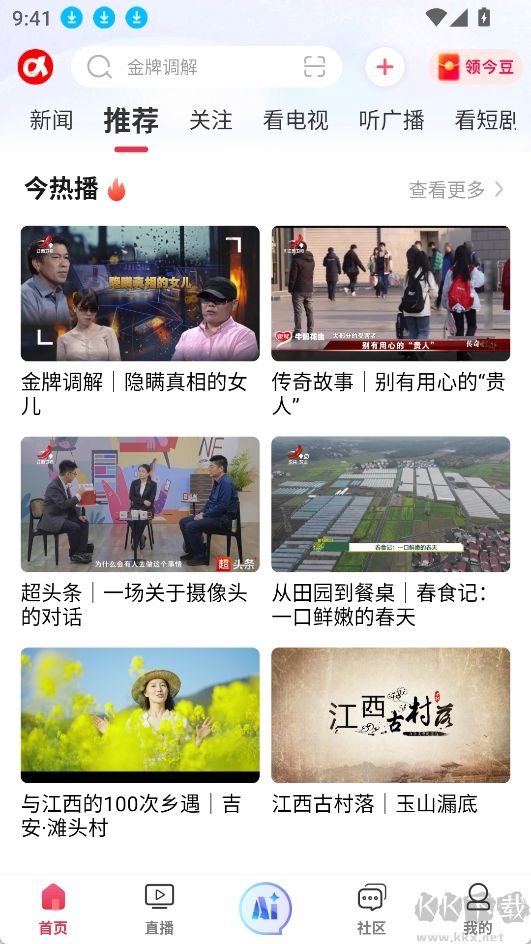 今視頻是一款本土化的新聞資訊應(yīng)用,實(shí)時(shí)熱點(diǎn)追蹤和深度內(nèi)容解析。界面設(shè)計(jì)符合主流資訊軟件使用習(xí)慣,24小時(shí)滾動(dòng)更新國(guó)內(nèi)外熱點(diǎn)新聞,把握社會(huì)動(dòng)態(tài)。江西本地電視頻道優(yōu)質(zhì)節(jié)目,實(shí)時(shí)觀看和回放功能。專注構(gòu)建本土化社區(qū)生態(tài),深耕新聞資訊、民生服務(wù)、情感生活等內(nèi)容板塊,權(quán)威媒體資源融入日常生活場(chǎng)景,傳遞積極價(jià)值觀念,打造具有地域特色的文化服務(wù)平臺(tái)。傳統(tǒng)媒體和新媒體資源創(chuàng)造的資訊獲取、生活服務(wù)和社區(qū)互動(dòng)的綜合型內(nèi)容。