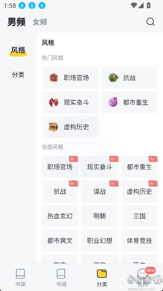 1.在分類區(qū)精準(zhǔn)檢索喜歡的小說類型;