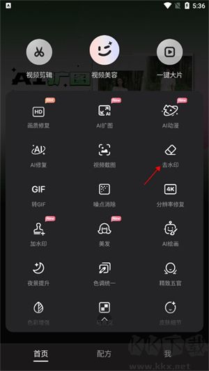 1、在首頁中找到并點擊去水印功能