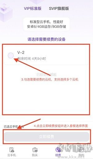 一旦選擇了套餐,接下來您需要選擇一個您擁有的云手機進行續(xù)費。系統(tǒng)會顯示您當前擁有的所有云手機,您可以從中選擇您要續(xù)費的那臺。